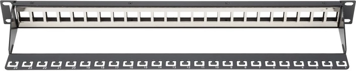 Dit 24‑poorts patchpaneel is bedoeld voor montage in standaard 19" (483 mm) rackkasten en is compatibel met keystone‑modules. Dankzij de afgeschermde uitvoering zorgt het voor betrouwbare werking, zelfs in veeleisende omgevingen met verhoogde elektromagnetische interferentie. De geïntegreerde kabelgoot helpt orde te houden en zorgt voor correcte trekontlasting.