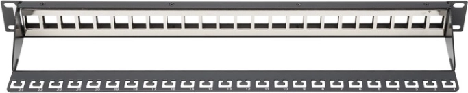 - 24 posities voor keystone – flexibele bezetting naar behoefte (Cat.5e/6/6A e.d.).