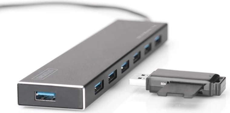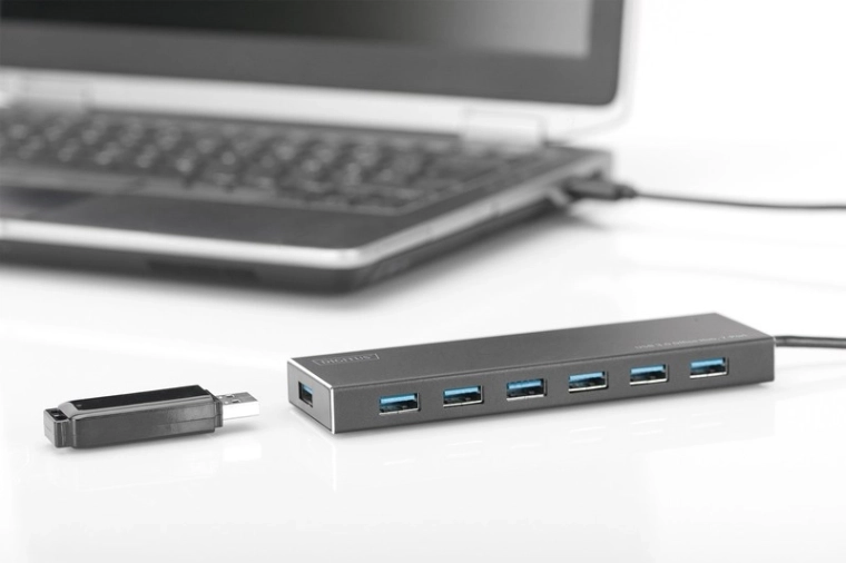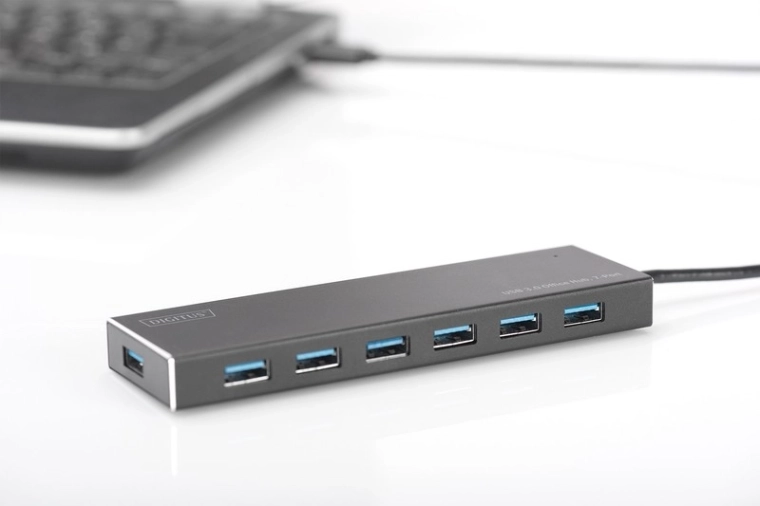 De DIGITUS USB 3.0 hub is een ideale aanvulling op elke werkplek. Het maakt het mogelijk om tot zeven USB-apparaten tegelijk aan te sluiten en te gebruiken, wat betekent dat het gebruik van meerdere invoerapparaten of draagbare opslag geen probleem zal zijn. Dankzij de USB 3.0-technologie worden gegevens overgedragen met een snelheid tot 5 Gbps, wat snelle gegevensuitwisseling garandeert.