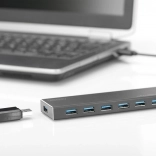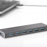 De DIGITUS USB 3.0 hub wordt gekenmerkt door een hoogwaardig aluminium behuizing, met een elegant en tijdloos ontwerp, passend bij elk bureau.