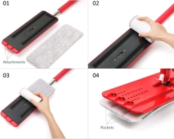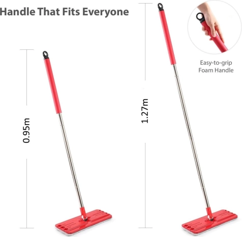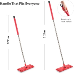 De set is gemaakt van duurzaam kunststof en geschikt voor diverse oppervlakken, waaronder houten vloeren, tegels en keramiek. De telescoopsteel met bereik 95–127 cm past zich aan uw lengte en schoonmaaktype aan. In de verpakking zitten 2 reserve microvezelhoezen die stof en aangekoekt vuil effectief vasthouden en eenvoudig te onderhouden zijn.