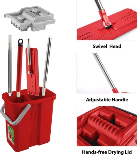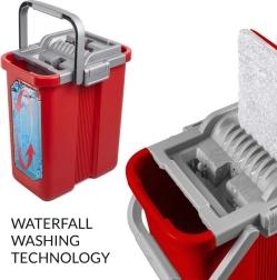Gescheiden kamers voor wassen en wringen houden het water langer schoon en maken snel schakelen tussen WASH en DRY mogelijk. U wringt de mop efficiënt uit zonder contact met vuil water.