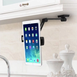 De verstelbare arm met draai- en kantelmogelijkheid zorgt altijd voor de ideale tabletpositie voor lezen, koken of videogesprekken.