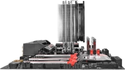 De koeler is ontworpen voor processors met een TDP tot 150 W, wat zorgt voor stabiele temperaturen bij gamingbelasting en veeleisende multitasking. Verbeterde aerodynamica van de bladen en rubberen hoeken op de ventilator verminderen trillingen en geluid, zodat je kunt genieten van een stille werking zonder compromissen.