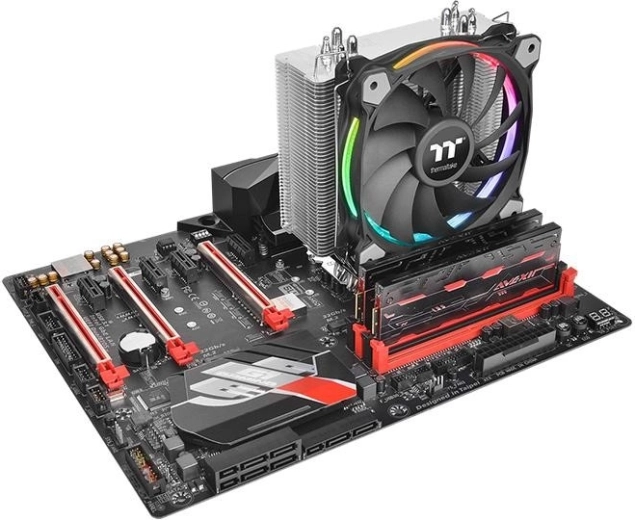 THERMALTAKE Riing Silent 12 RGB Sync combineert geoptimaliseerde aluminium lamellen, meerdere heatpipes en een 120 mm ventilator met een adresserbare RGB-ring voor een uitgebalanceerde verhouding tussen prestaties en stilte. Dankzij ondersteuning van toonaangevende moederborden met RGB-synchronisatie stem je de verlichting eenvoudig af op de rest van je systeem.