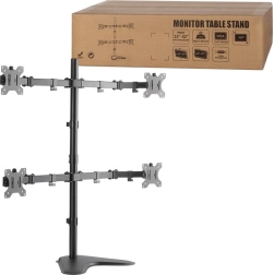 Universele bureausteun voor vier monitoren met een schermdiagonaal van 13–32" bespaart ruimte en verbetert de ergonomie. Elke arm draagt tot 8 kg, ondersteunt VESA 75x75 en 100x100 en biedt kantelen, zwenken en rotatie voor een ideale beeldafstelling.