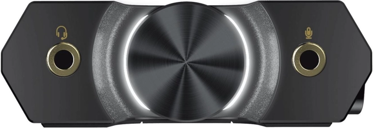 - Grote draaibare volumeknop, profielwisseling, wisselen hoofdtelefoon/luidsprekers in software