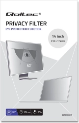 Bescherm gevoelige gegevens en uw privacy met het QOLTEC-privacyfilter voor 14"-displays 16:9. Dankzij de micro-louvertechnologie is het beeld alleen van voren leesbaar en wordt het vanuit zijhoeken donkerder. Het filter biedt bovendien een antireflecterend oppervlak, reduceert blauw licht voor minder oogvermoeidheid en beschermt het scherm tegen krassen en vingerafdrukken. De montage is snel en eenvoudig – met clips op de rand of transparante kleefstrips. Ideaal voor werken op locatie, kantoren, overheidsinstellingen en financiële organisaties in overeenstemming met GDPR.