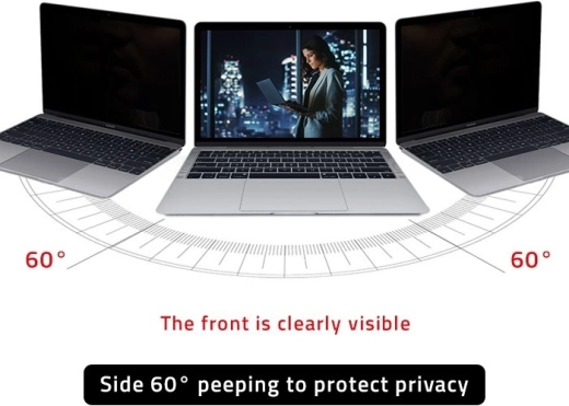 De micro‑lamellen technologie zorgt voor een goed leesbaar beeld binnen een kijkhoek van 60°. Vanaf de zijkanten wordt de inhoud in een hoek van 120° geblokkeerd, zodat gevoelige informatie veilig blijft.