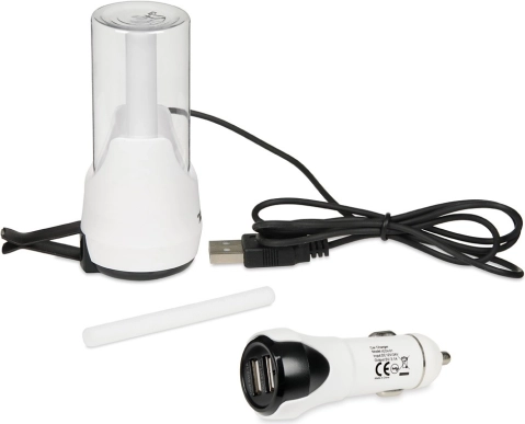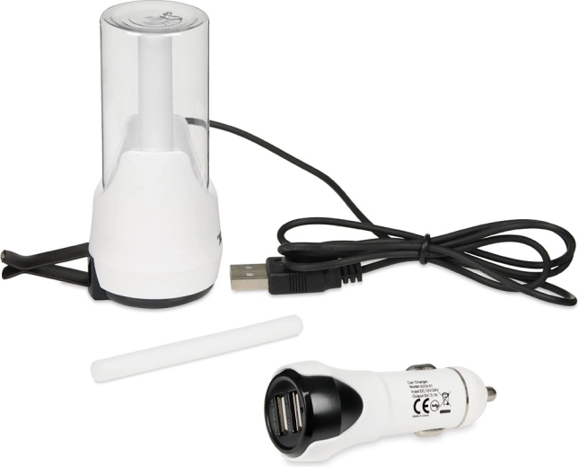 Geniet van een frisse en comfortabele omgeving tijdens het rijden. Deze gecombineerde autolader met aromadiffuser CH-01 maakt het mogelijk om tegelijkertijd mobiele apparaten op te laden en de lucht te bevochtigen met een fijne nevel. Steek hem in de sigarettenaansteker, sluit de USB-kabel aan en activeer de bevochtiging met één knop.