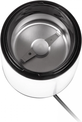 De bediening is uiterst eenvoudig – druk op de grote blauw verlichte knop en binnen enkele seconden heb je versgemalen koffie. Het transparante deksel maakt het mogelijk de maalgraad te controleren, zodat je het resultaat eenvoudig aanpast voor espresso, moka pot of french press.