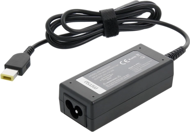 Betrouwbare 45 W voedingsadapter voor Lenovo-laptops met uitgang 20 V / 2,25 A en rechthoekige connector 11,0 × 4,5 mm (Yoga). De lader van het merk Mitsu biedt een ferrietfilter, geavanceerde beveiligingen tegen overspanning, oververhitting, overbelasting en overladen, en is ideaal voor veeleisende gebruikers die veilig en comfortabel gebruik eisen. Voorzien van de certificeringen CE, RoHS, FCC.