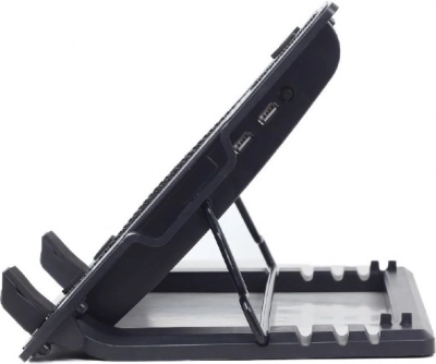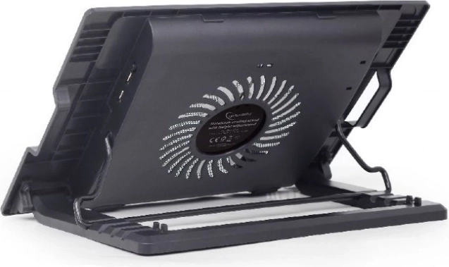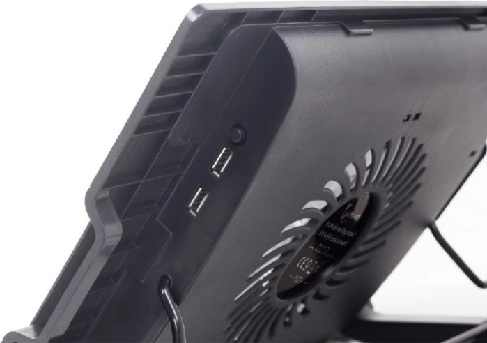 De grote ventilator met een diameter van 150 mm zorgt voor een stabiele luchtstroom en verlaagt effectief de temperatuur van de laptop, terwijl hij aangenaam stil blijft. Discrete ledverlichting geeft aan dat hij actief is.