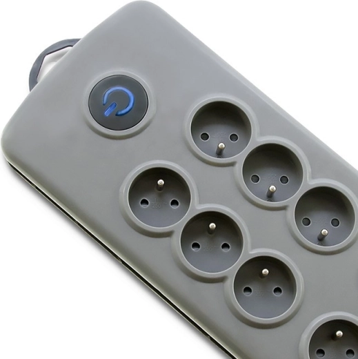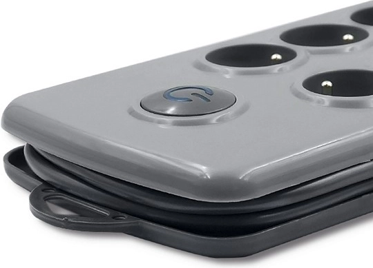 Het minimalistische ontwerp in grijs past in moderne interieurs. Praktische details zoals de mogelijkheid om overtollige kabel op te rollen en de voorbereiding voor montage op meubels helpen om orde te houden achter de tv-wand, onder het bureau en in de keuken. Kinderbeveiliging in de stopcontacten en vlamvertragend PP-materiaal verhogen de veiligheid bij dagelijks gebruik.