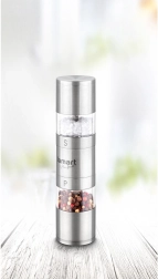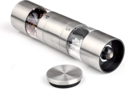 De molen is ontworpen om in één compact design zowel een zout- als pepermolen te combineren, waardoor je ruimte in de keuken bespaart en tegelijkertijd een elegante uitstraling behoudt.