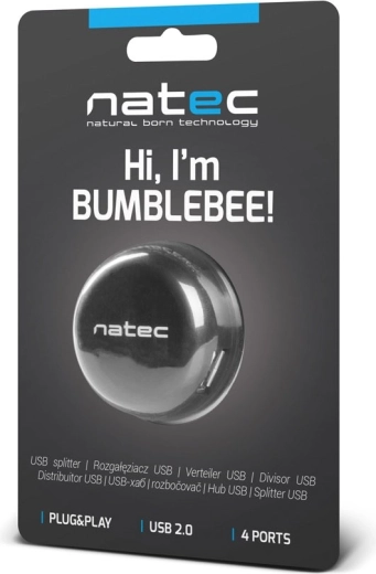 De Natec Bumblebee biedt 4 USB-poorten waarmee je eenvoudig meerdere apparaten kunt aansluiten en beheren.