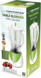 Geniet elke dag van mixen met de compacte en betrouwbare tafelblender Esperanza Pina Colada. Ideaal voor het bereiden van fruit- en groentedranken, soepen of babyhapjes. De krachtige motor met Turbo kan overweg met kleine ijsblokjes en de roestvrijstalen messen zorgen voor een gelijkmatige mix.