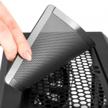 Het is mogelijk om drie 2,5" SSD's en twee 3,5" HDD's te installeren zonder het gebruik van gereedschap. SSD-schijven worden aan beide zijden gemonteerd, wat de luchtstroom niet blokkeert.