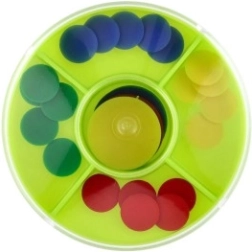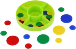 Het spel helpt kinderen hun fijne motoriek te ontwikkelen door te manipuleren met kleine schijfjes.