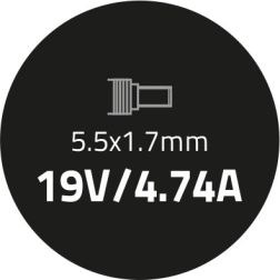 De adapter is uitgerust met een set beveiligingen die zowel het apparaat als de voeding beschermen: tegen overspanning, overbelasting, kortsluiting en met thermische beveiliging. Dankzij de juiste parameters (19 V, 4,74 A) en de precieze connector 5,5 × 1,7 mm is hij compatibel met veel ACER-modellen.