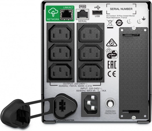 De APC Smart-UPS 750 VA onderscheidt zich door hoge efficiëntie en intelligent batterijbeheer voor een langere levensduur en betrouwbaarheid. Het geïntegreerde LCD-scherm toont cruciale informatie over de status van de UPS, de belasting en de back-uptijd. De SmartConnect-functie maakt veilige cloudbewaking en meldingen mogelijk zonder extra software.