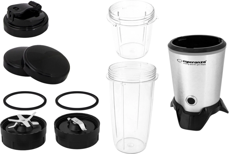 De basis van geborsteld aluminium en de Tritan-bekers geven de blender een elegante uitstraling.
