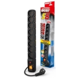 Zwarte stekkerdoos met overspanningsbeveiliging 8 stopcontacten 3 m - Acar