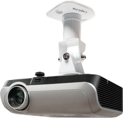 De behuizing van de steun is gemaakt van aluminium gietwerk, dat hoge sterkte en stabiliteit biedt bij de montage van projectoren tot 15 kg. De witte afwerking past in zowel woonruimtes als kantoren.