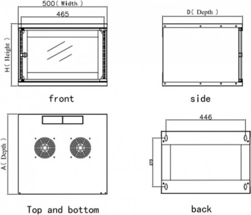 Perforaties in zowel het boven- als onderpaneel maken de installatie van maximaal twee ventilatoren van 120 × 120 mm mogelijk voor een stabiele temperatuur en betrouwbare werking van apparatuur.