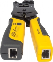 Professioneel universeel gereedschap voor het krimpen van stekkers met functies voor snijden en strippen, en met een kabeltester.