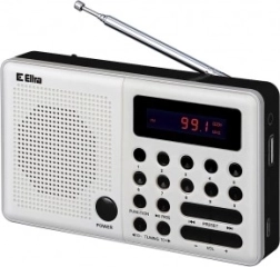 Draagbare radio met USB en FM ontvangst, ideaal voor het luisteren naar muziek overal dankzij het compacte formaat en de mogelijkheid om op batterijen te werken.