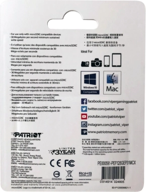 Patriot EP A1 microSD-kaart is uitgerust met de A1 App Classification prestatielabel, wat probleemloos gebruik in Android-apparaten mogelijk maakt. Ondersteunt het opslaan en rechtstreeks starten van apps op de kaart en leessnelheden tot 90 MB/s.