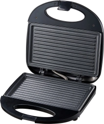 Antiaanbaklaag voorkomt aanbranden en maakt schoonmaken eenvoudig. De geribbelde platen geven sandwiches een aantrekkelijk grillpatroon en een krokante korst.