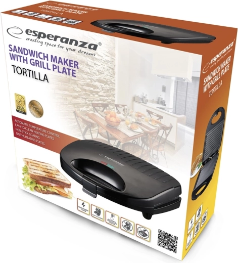 Geniet van snelle bereiding van favoriete sandwiches en tortilla’s. Het krachtige 1000 W vermogen zorgt voor vlotte opwarming, terwijl de automatische temperatuurregeling ideale omstandigheden behoudt voor egale bruining.
