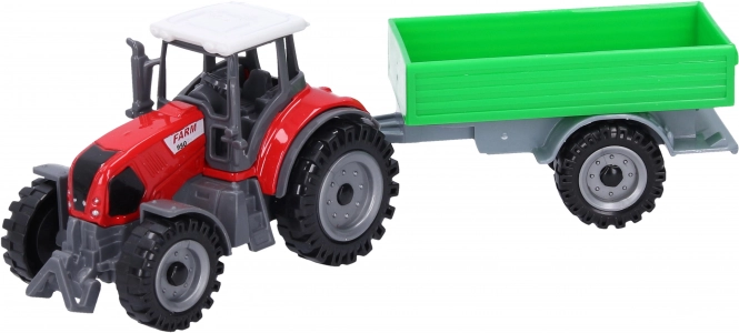 Metalen tractor met aanhanger van 18 cm, het ideale speelgoed voor kleine boeren vanaf 3 jaar. Stevige constructie en vrijlopende wielen voor veel speelplezier.