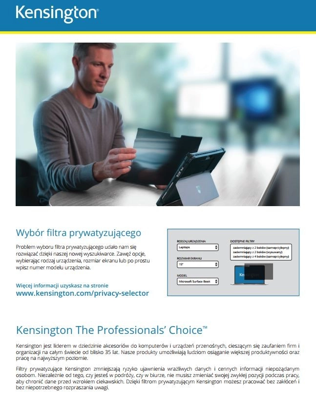 Beperkt de kijkhoek tot +/- 30°, waardoor persoonlijke of vertrouwelijke informatie wordt afgeschermd voor iedereen die van opzij probeert mee te kijken