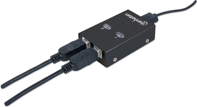 Het apparaat is ontworpen voor snelle inzet zonder drivers – gewoon aansluiten en gebruiken. De afzonderlijke knoppen 1 en 2 bieden handmatige selectie, terwijl de geïntegreerde overbelastingsbeveiliging en hot‑swap zorgen voor veilig gebruik. De compacte metalen behuizing is ideaal voor op het bureau en op kantoor.
