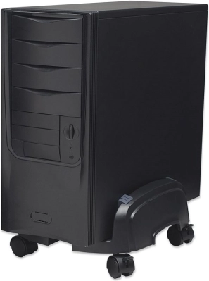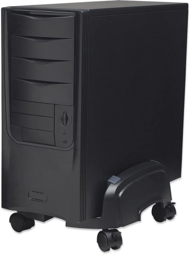 Houd je desktopcomputer veilig en altijd binnen handbereik. Deze zwarte standaard met wielen tilt de pc-behuizing van de vloer, beschermt zo tegen stof en per ongeluk gemorste vloeistoffen en verbetert tegelijk de luchtstroom. De verstelbare breedte van 155–255 mm past op de meeste computerbehuizingen.