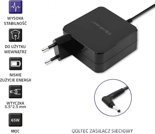 Betrouwbare voeding voor uw Asus-laptop. Deze Qoltec-voeding is ontworpen om stabiliteit en veiligheid te bieden dankzij ingebouwde beveiligingen.