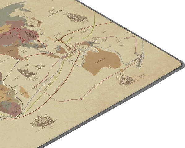 De Discoveries Maxi muismat biedt een ruim oppervlak voor comfortabel gebruik van zowel muis als toetsenbord. Dankzij het grote formaat beschermt hij ook uw bureau tegen beschadigingen. De speciaal ontworpen grafiek met een wereldkaart en markeringen van belangrijke geografische ontdekkingsreizen brengt een uniek esthetisch element in elke studeerkamer of kantoor.
