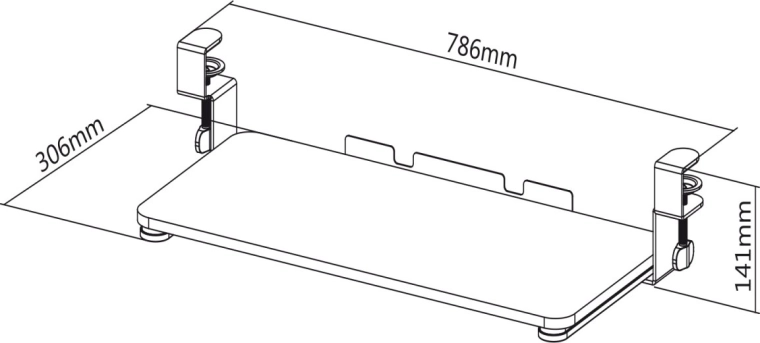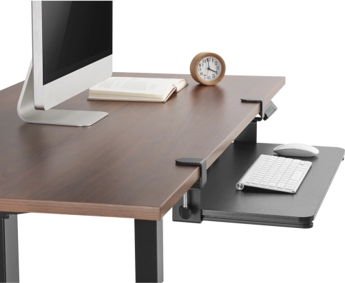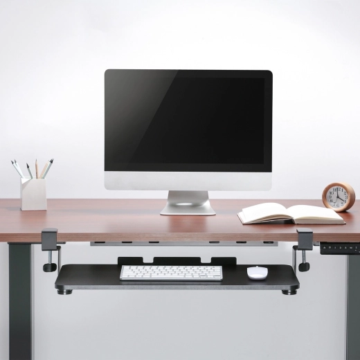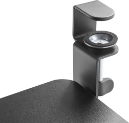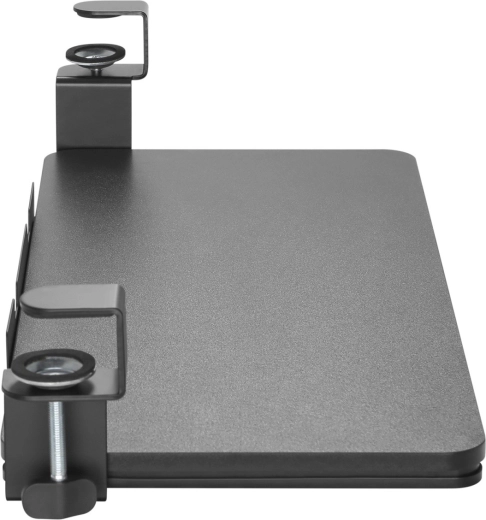 De onderbouwplank MC-839 wordt eenvoudig met stevige klemmen aan de rand van het bureau bevestigd, waardoor boren of gereedschap niet nodig is. Het brede oppervlak biedt voldoende ruimte voor toetsenbord en muis, waardoor je werkblad vrijer wordt en de ergonomie van je zithouding verbetert.