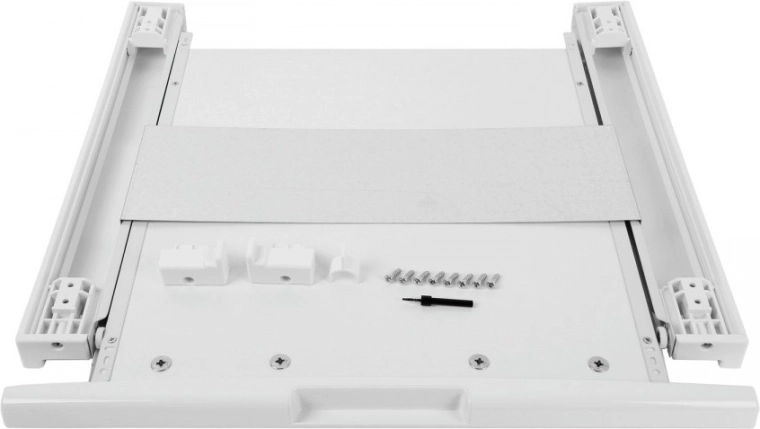 U hoeft zich niet meer te bukken en naar binnen te kruipen van de droger! Dit praktische verbindingsstuk met uitschuifbare plank verlicht niet alleen uw werk, maar is ook de ideale oplossing voor beperkte ruimtes. Gemakkelijke montage dankzij de meegeleverde schroeven zorgt voor betrouwbare stabiliteit.