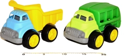 Ontdek bouwplezier met dit praktische bouwvoertuig van 16 cm. Dankzij de vrije wielen rijdt het soepel over verschillende ondergronden en het compacte formaat past perfect in kinderhanden. Verkrijgbaar in drie aantrekkelijke varianten – kiepwagen, takelwagen en vuilniswagen – die de fantasie en thematisch spel stimuleren.