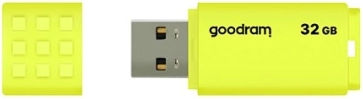 De compacte USB-flashdrive Goodram NEO 32 GB in een opvallende gele kleur biedt betrouwbaar gegevensopslag voor werk en plezier. De praktische dop met antisliptextuur kan op de achterkant van de behuizing worden geplaatst, zodat je hem niet snel kwijtraakt. Dankzij het koordgaatje heb je de stick altijd bij de hand. Snelheden tot 20 MB/s lezen en 5 MB/s schrijven, een USB 2.0-interface en levenslange fabrieksgarantie zorgen voor langdurige betrouwbaarheid.