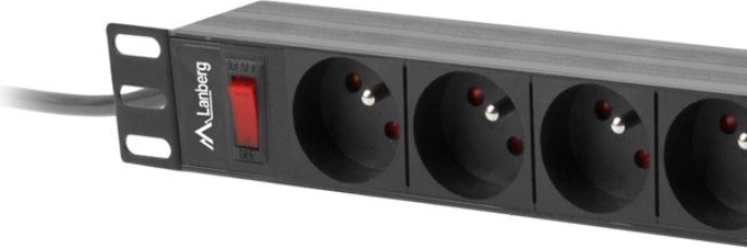 Professionele PDU-stroombalk van Lanberg voor 19" racks met 1U horizontale montage, 9 Franse stopcontacten (NF C 61-314), belasting tot 4000 W en betrouwbare 230 V-voeding. Dankzij de overbelastingsbeveiliging in de schakelaar, het kwalitatieve aluminium behuizing en de 3 m voedingskabel met uni-schuko stekker is hij ideaal voor serverruimtes en professionele installaties.