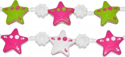 De ketting voor de kinderwagen in de vorm van sterren en bloemetjes biedt vele functies: