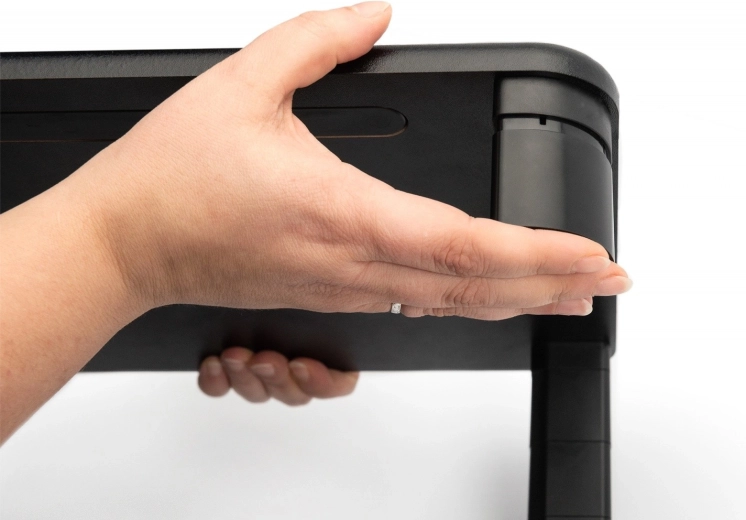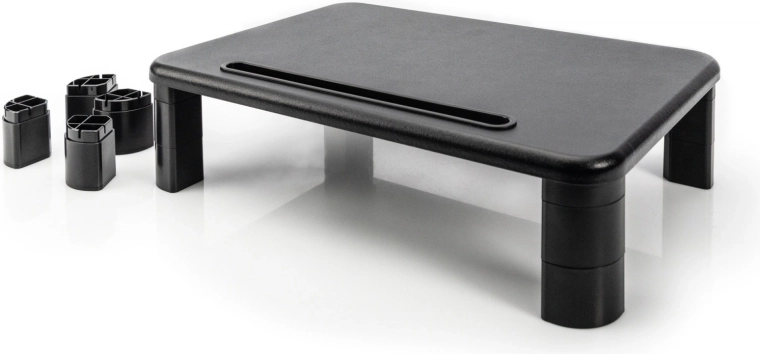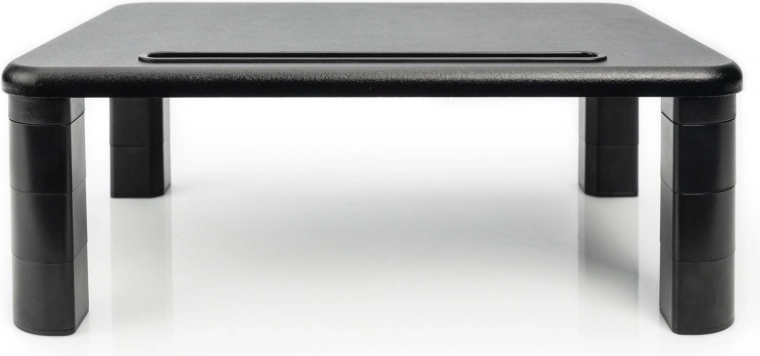 Geniet van comfortabeler werken met deze stijlvolle en functionele monitorstandaard. Modulair ontwerp zorgt ervoor dat u de hoogte in drie stappen kunt aanpassen volgens uw behoeften, wat een ergonomische positionering van de monitor verzekert. De voorkant van de standaard is ontworpen om uw tablet of smartphone te plaatsen, waardoor u de ruimte op uw bureau effectief benut.