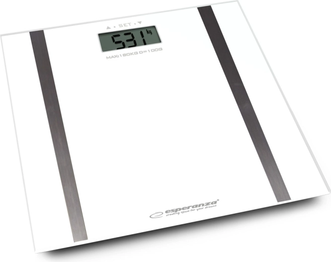 Het LCD‑display is energiezuinig en heeft afmetingen van 70 x 30 mm. Het platform is van veilig, gehard glas en het product heeft totale afmetingen van 300 x 300 x 20 mm. Beschikbare weegeenheden: kg, lb, st. De weegschaal schakelt in met een touch-tap functie en heeft automatische uitschakeling. Indicatie voor lage batterij en overbelasting is aanwezig.