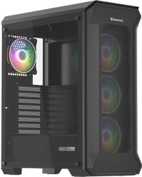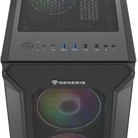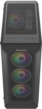De stijlvolle pc-behuizing GENESIS Irid 505 V2 ARGB is een midi-tower met gehard glas, een geperforeerd front voor hoge airflow en vier stille 120mm ARGB-ventilatoren in de verpakking. Biedt USB 3.0, praktische bediening van de ARGB-verlichting, uitstekende schijfondersteuning en perfecte kabelmanagement.
