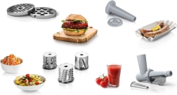- Hoge functionaliteit van het apparaat. Met het toestel kunt u niet alleen vlees malen, maar ook groenten en fruit op verschillende manieren snijden, aardappelen raspen voor pannenkoekjes enz.